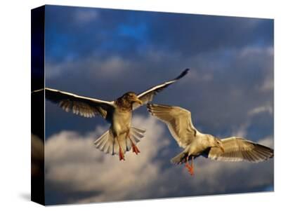 Seabirds Flying Around The Bainbridge Island Ferry In Puget Sound Seattle Washington Usa