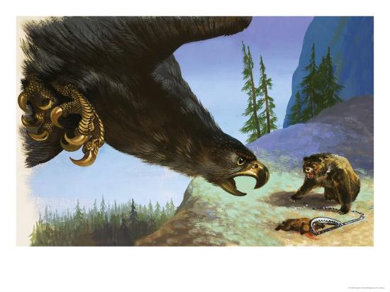 Golden Eagle Attacks Bear For Animal In Trap Giclee Print By Artcom