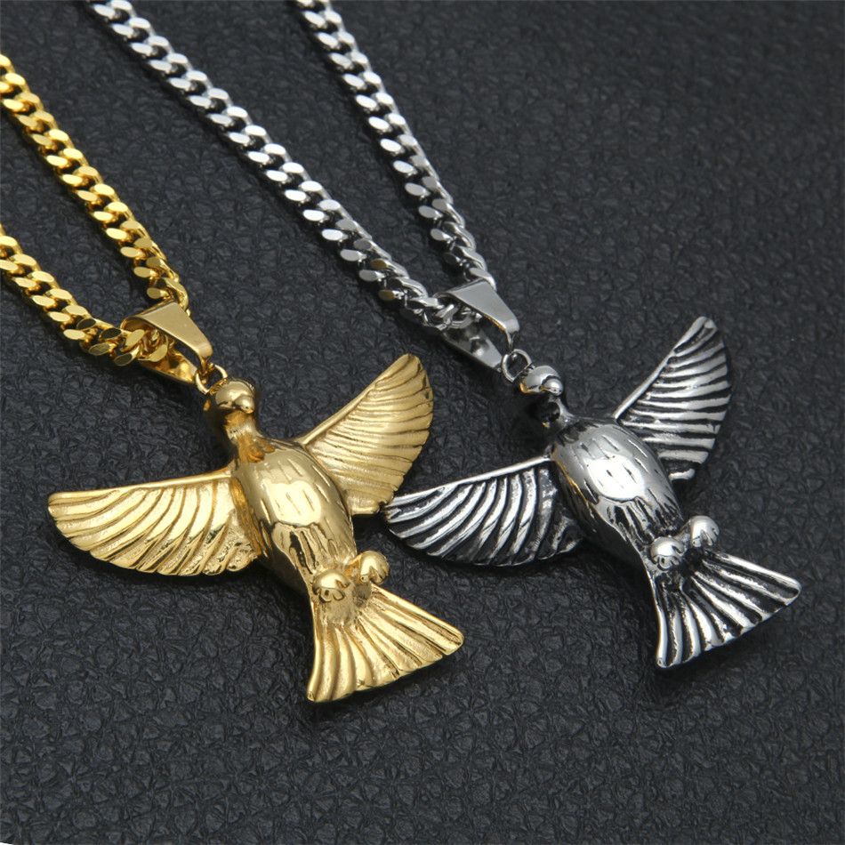 Us 639 20 Offflight Eagle Necklace Pendant Gold Color Stainless Steel Hawk Wing Animal Mens Jewelry Wholesale Hiphop Necklace In Pendants From