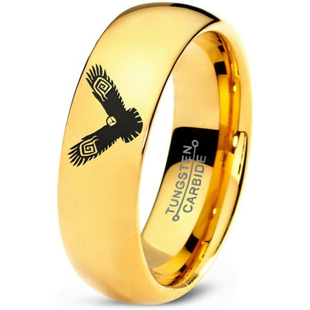 Tungsten Flying Eagle Band Ring 7mm Men Women Comfort Fit 18k Yellow Gold Dome Polished